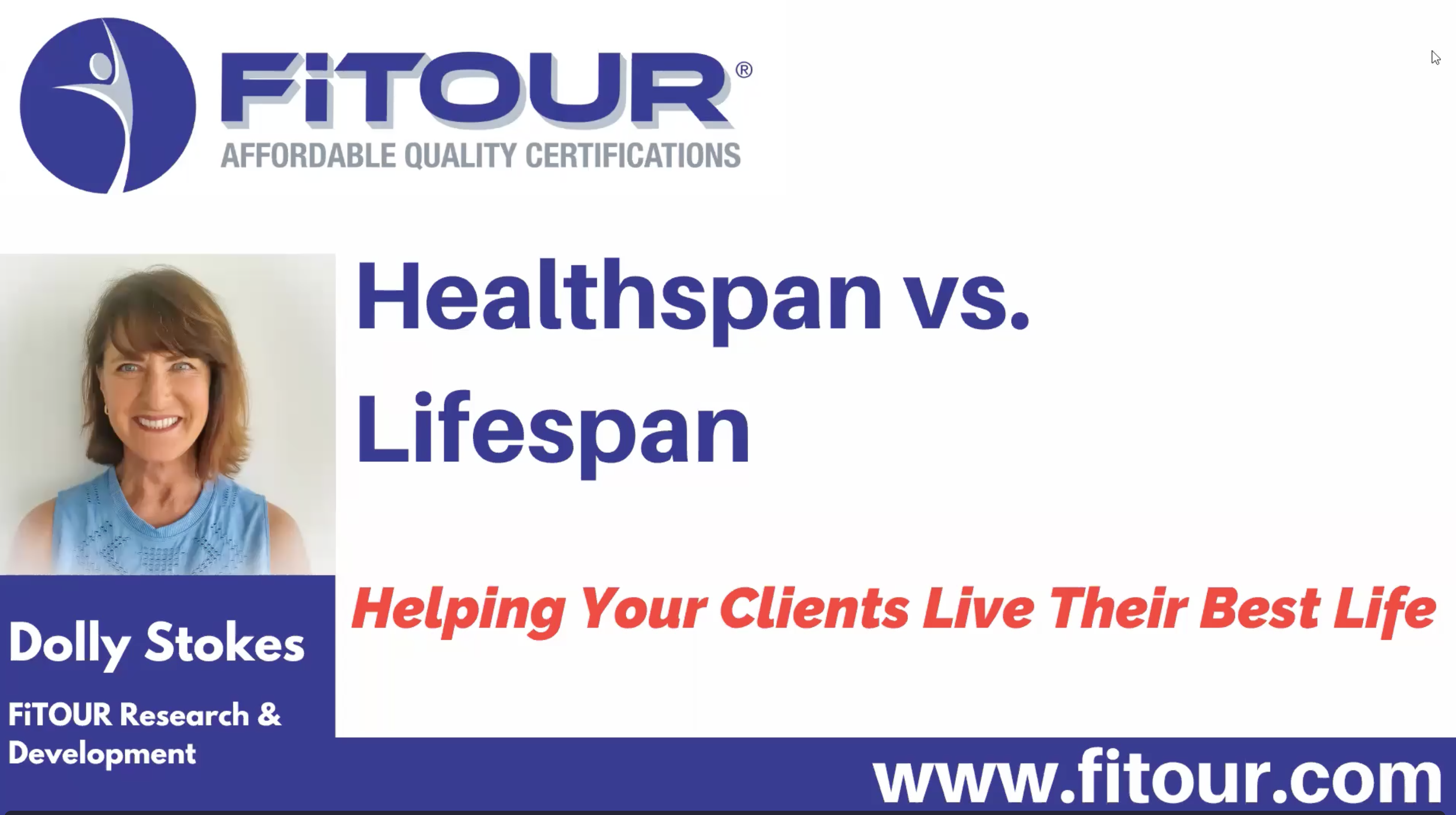 President John F. Kennedy once said, “It is not enough for a great nation to have added new years to life – our objective must also be to add new life to those years.” With nearly 40 years as a fitness pro, Dolly Stokes has observed the industry shift from prioritizing appearance to focusing on overall health. In recent years, wellness-based training programs have become increasingly popular. Dolly has been training many of her clients since she first began her fitness career. She has developed strategies to keep her clients thriving and living active lives, even as they experience the inevitable natural aging process. In this upcoming webinar, Dolly will share her core healthspan concepts and easy strategies you can add to your programs, helping clients add new life to their years and continuing to living their best life.WATCH NOW!
